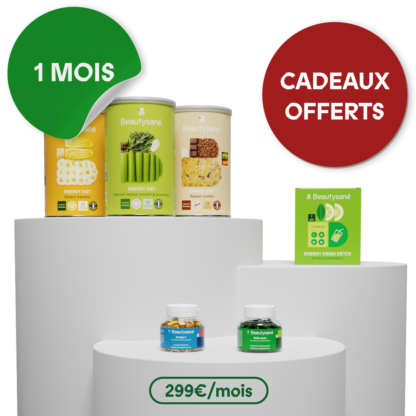 Energy Détox : Maltodextrine, extrait de feuilles de thé vert (Camellia sinensis) (2,8%), extrait de pomme, arôme naturel, feuilles de kinkeliba (Combretum micranthum) (0,39%), vitamine C, thalles de fucus (Fucus vesiculosus L.) (poisson, crustacé, mollusque) (0,29%), feuilles de menthe poivrée (Mentha x piperita L.) (0,20%), racine de gingembre (Zingiber officinale) (0,20%), extrait de graines de guarana (Paullinia cupana, caféine naturelle) (0,20 %), extrait de feuilles de pissenlit (Taraxacum officinale) (0,10%), vitamine B3, vitamine B6, vitamine B1.