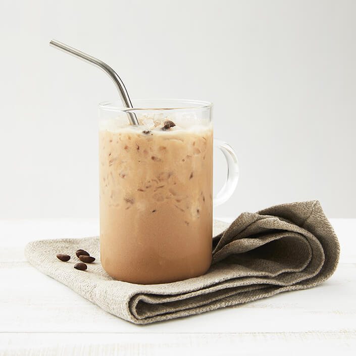 extrait de café (6%), cacao maigre (5%), protéines de lait, maltodextrine, épaississants : gomme de cellulose, gomme guar; inuline de chicorée, citrate